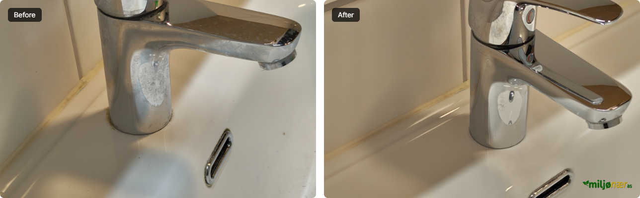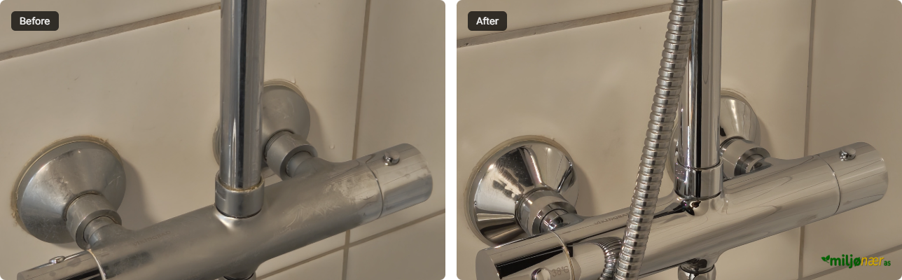 Vår rengjøringsmetode bygger på 100 % kjemikaliefri tørr damp. Vi bruker rent vann som varmes opp til svært høy temperatur og settes under trykk. Den varme dampen trenger dypt inn i porer og sprekker, løser opp fett, smuss og bakterier, og etterlater overflatene rene uten bruk av vaskemidler, blekemidler eller duftstoffer. Metoden er skånsom mot både mennesker, dyr og miljø, samtidig som den gir et hygienisk resultat.